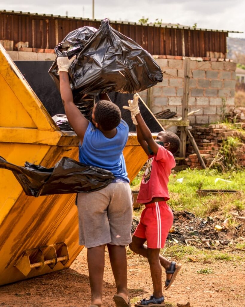 YMAD’s vision is of a community of empowered individuals who can self-organise and recycle solid waste, improving the natural ecosystem and living conditions at the same time. In fact, the separation of recycled or general waste at source (from households and businesses) is an essential step to adopting a behavioural change of the disposal of waste into the correct waste categorized bin or bag used by recycling team. In line with the Republic of South Africa’s National Waste Management Strategy 2020, YMAD NPO has adopted the performance target of 70% waste diversion from the landfills near the communities we work in, by 2030, in addition to help reduce the carbon emissions by 45%, globally.